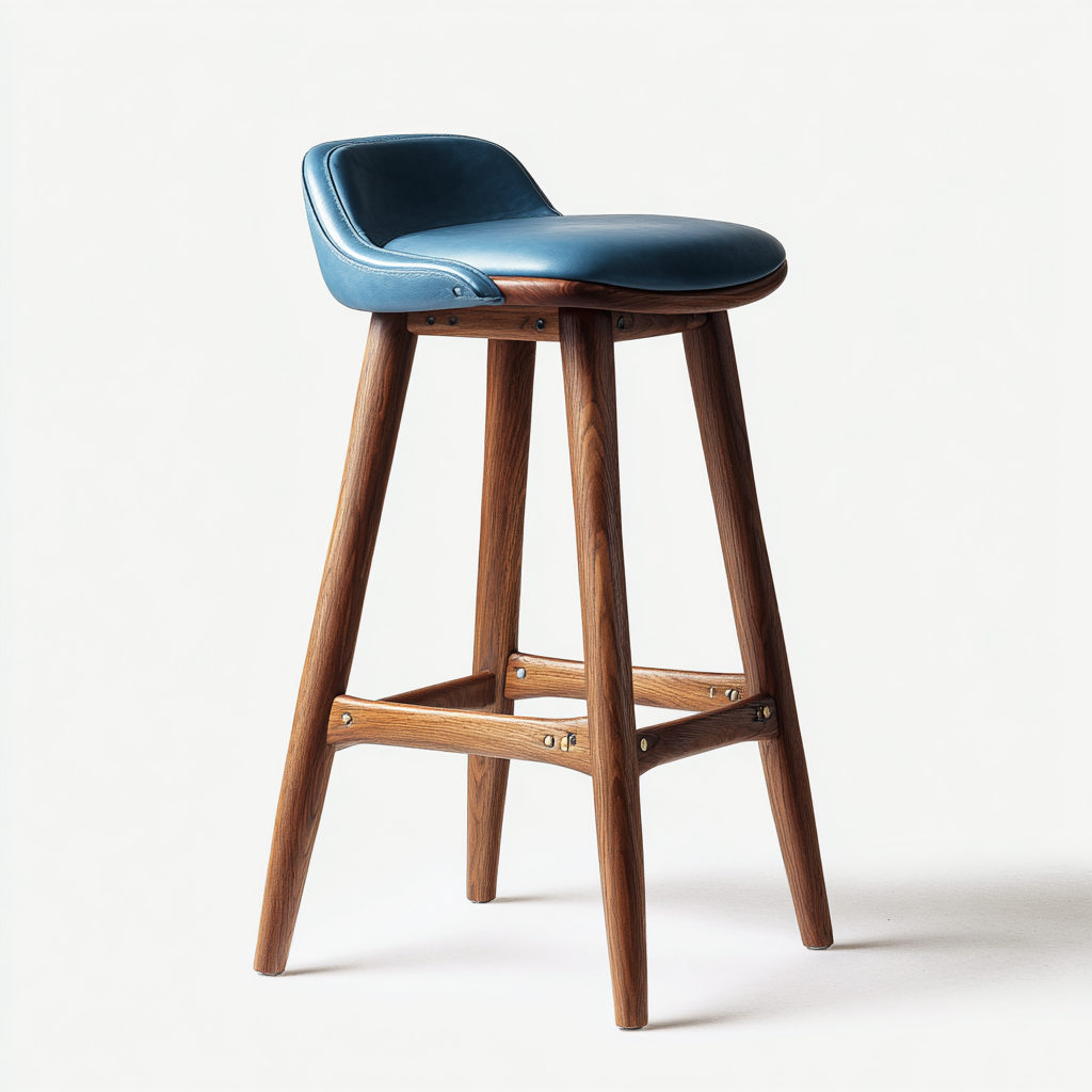 Sgabello da bar Pelle-Legno 45x50x95 cm Blu - Design imbottito