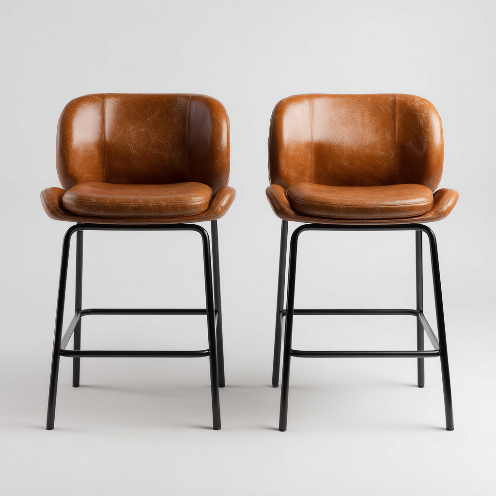 Sgabello da bar Pelle-Metallo 48x52x95 cm Marrone-Nero - Design contemporaneo