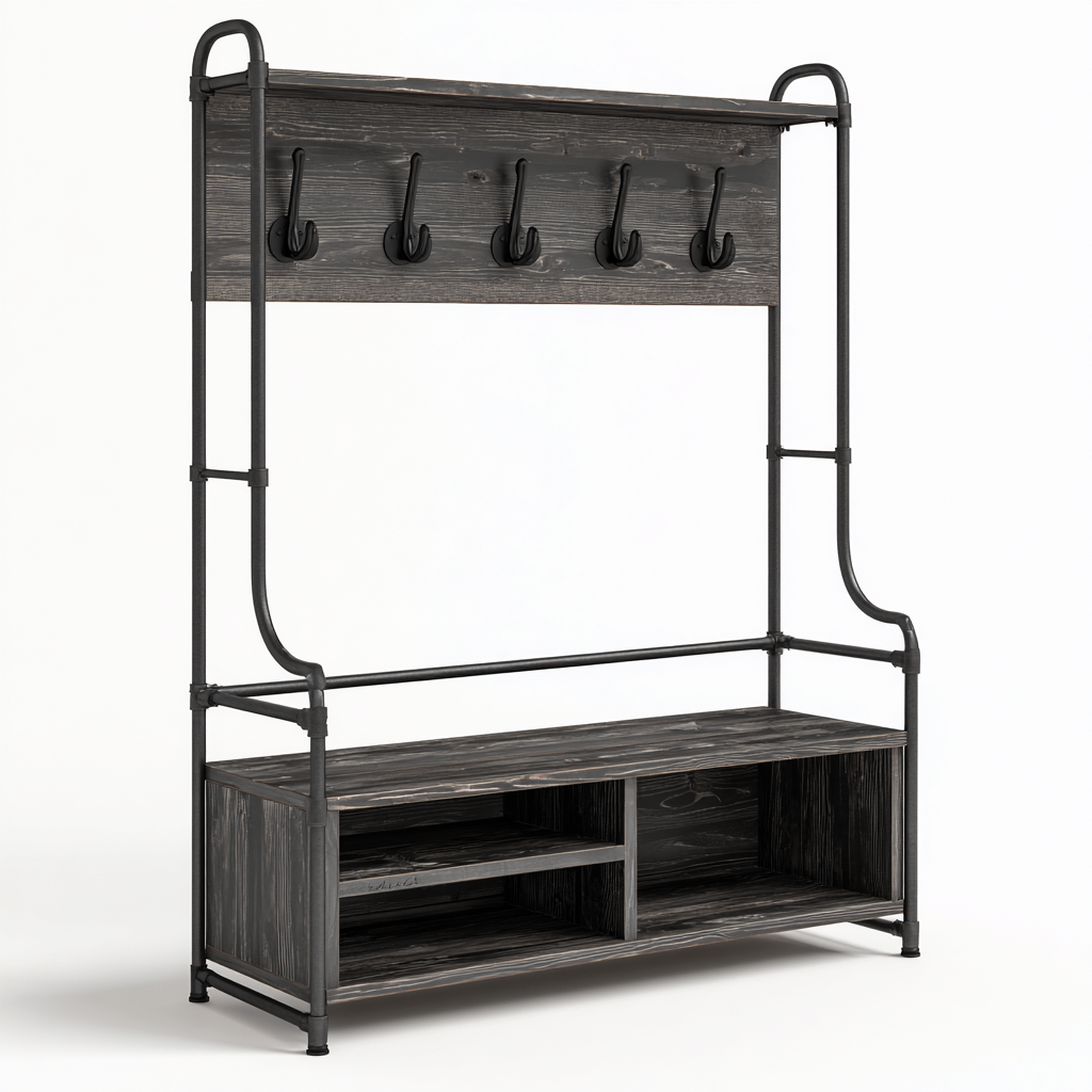 Attaccapanni in legno e metallo 110x40x180 cm - nero-marrone scuro - design per ingresso