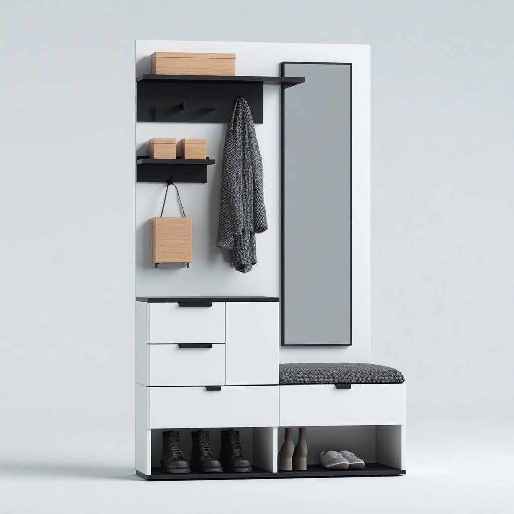 Attaccapanni legno 115x38x172 cm - bianco-nero - design moderno