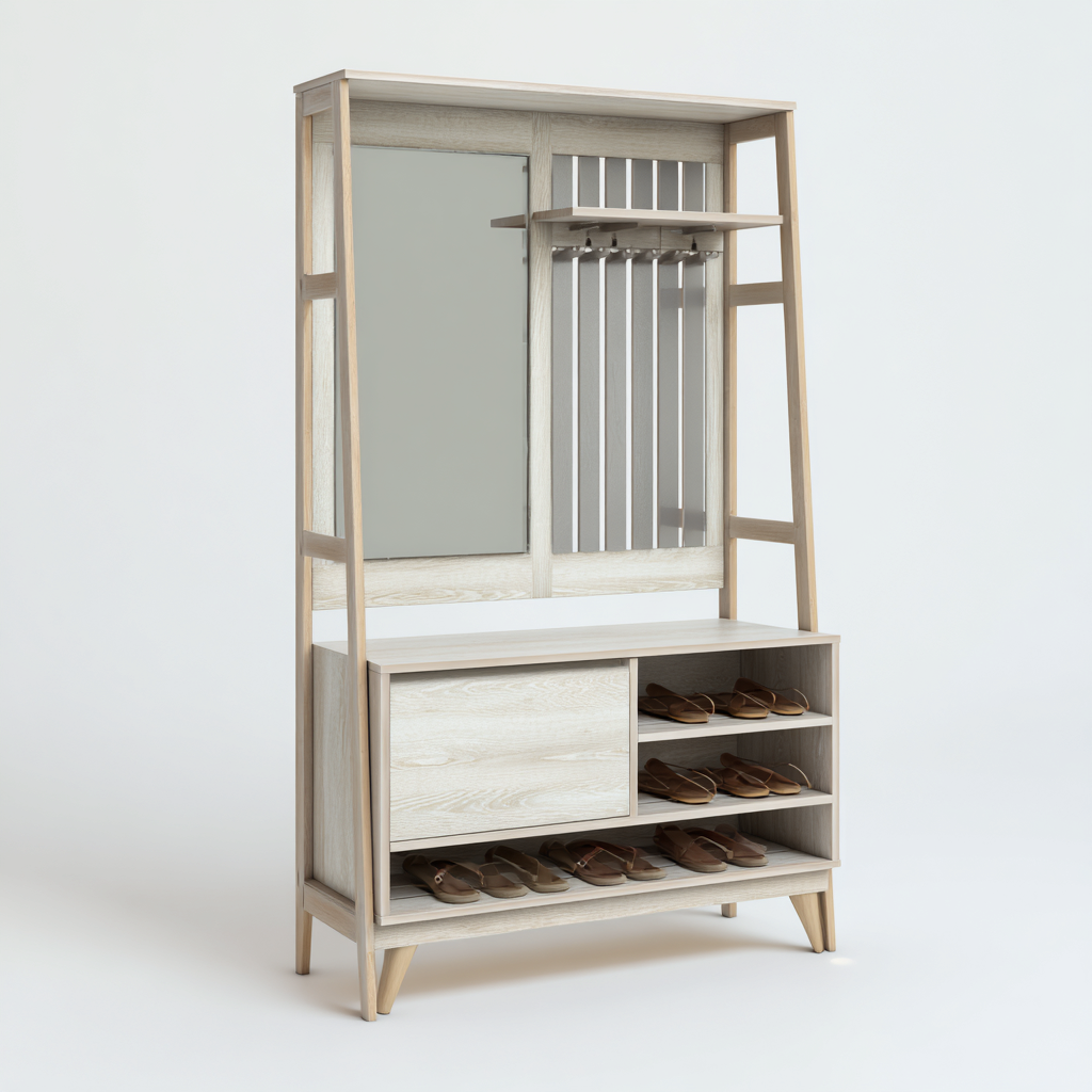 Attaccapanni legno-metallo 110x40x180 cm - rovere chiaro-bianco - adatto per ingresso - design moderno