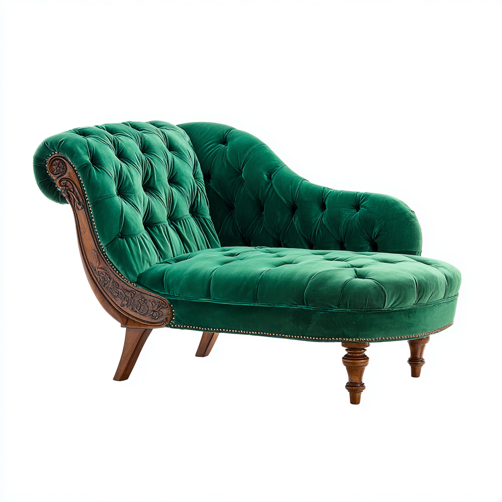 Chaise longue in velluto verde con dettagli in legno intagliato 168x74x87 cm - verde - stile classico
