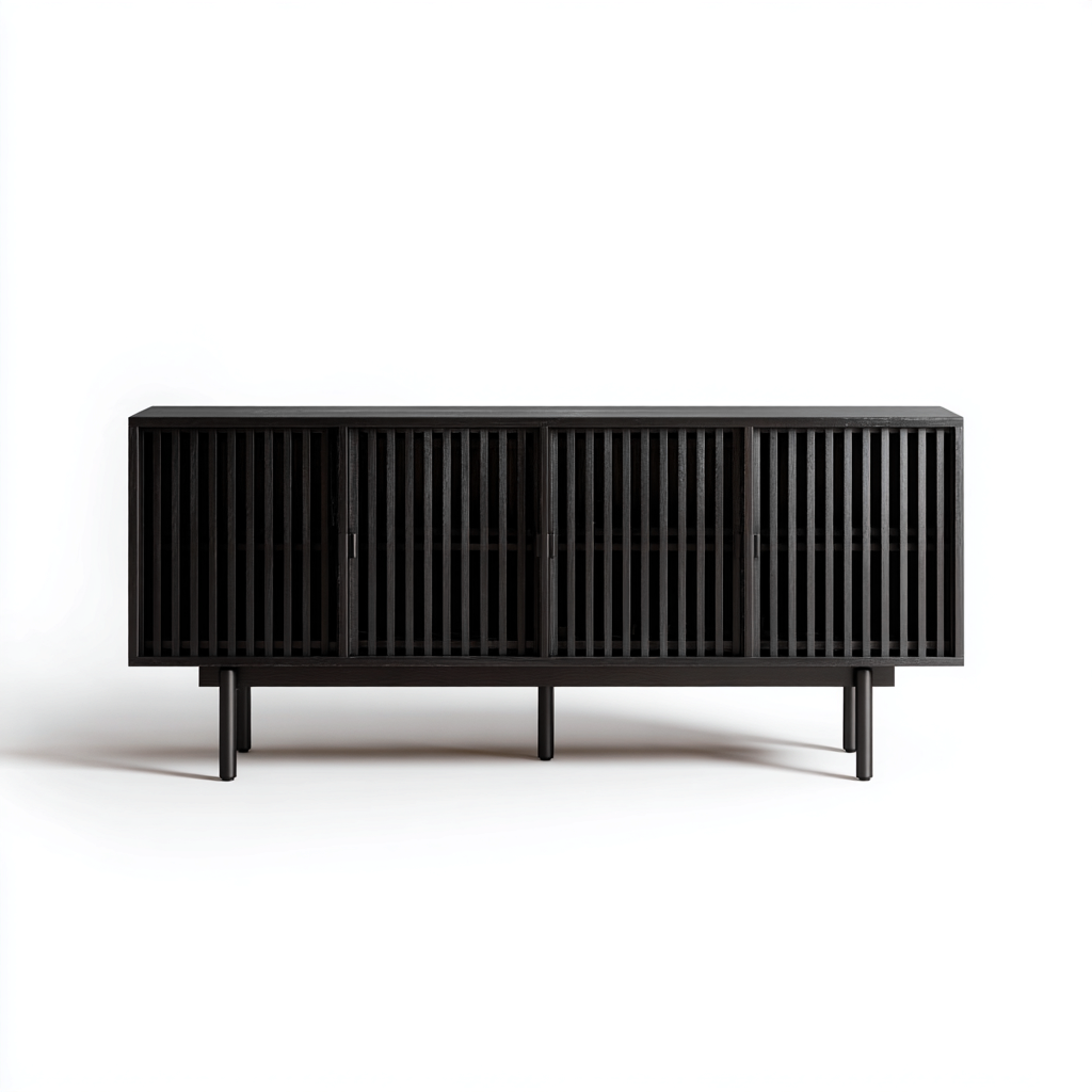 Credenza in legno con ante a doghe 160x40x75 cm - nero - design moderno