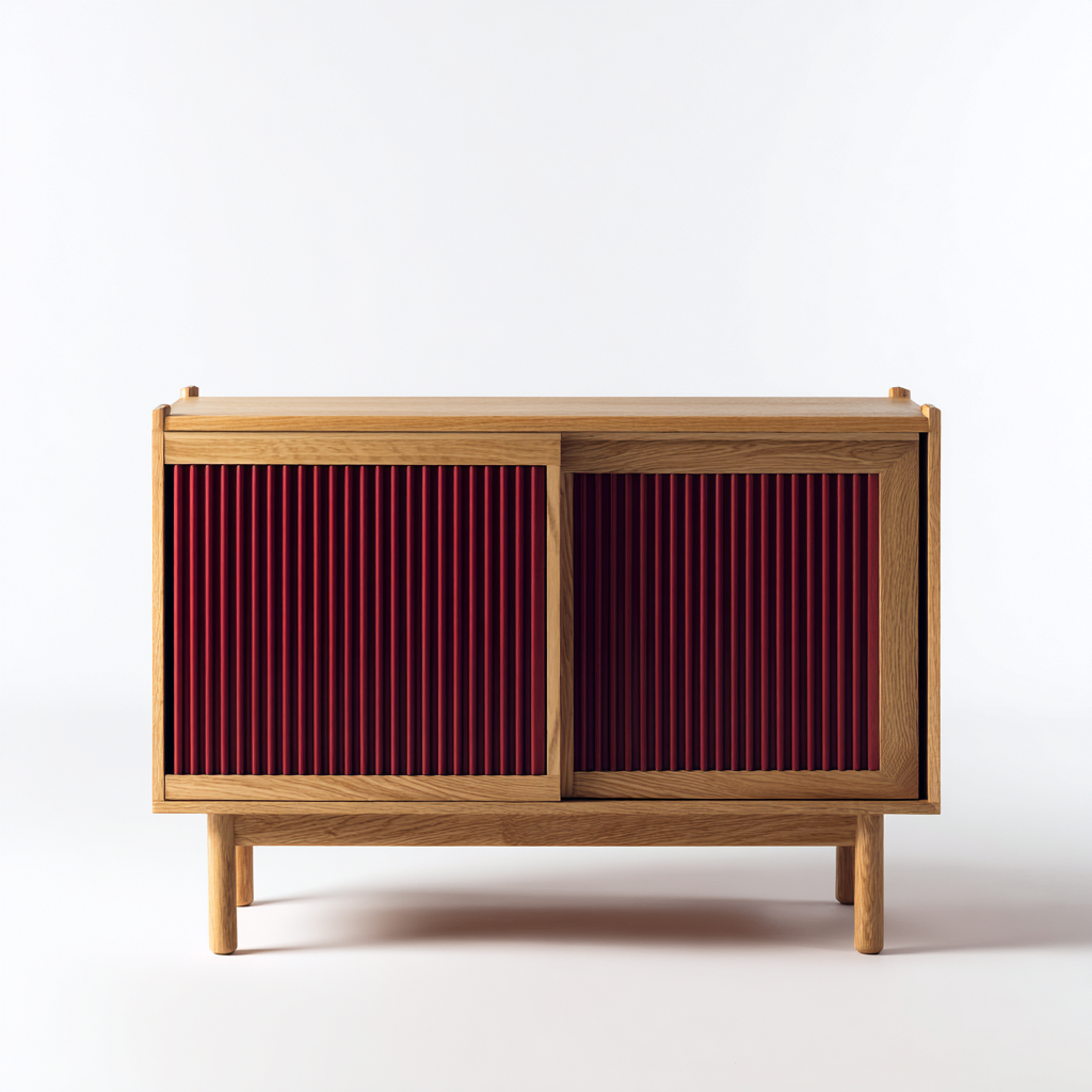 Credenza in legno con ante scorrevoli 120x40x75 cm - rosso-legno naturale - design moderno