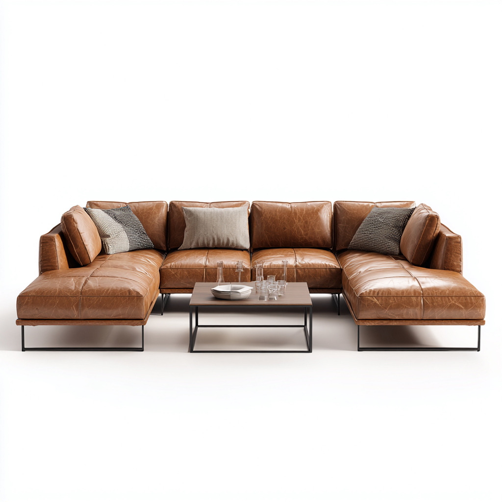 Divani modulari in pelle 310x210x82 cm - marrone-nero - design moderno