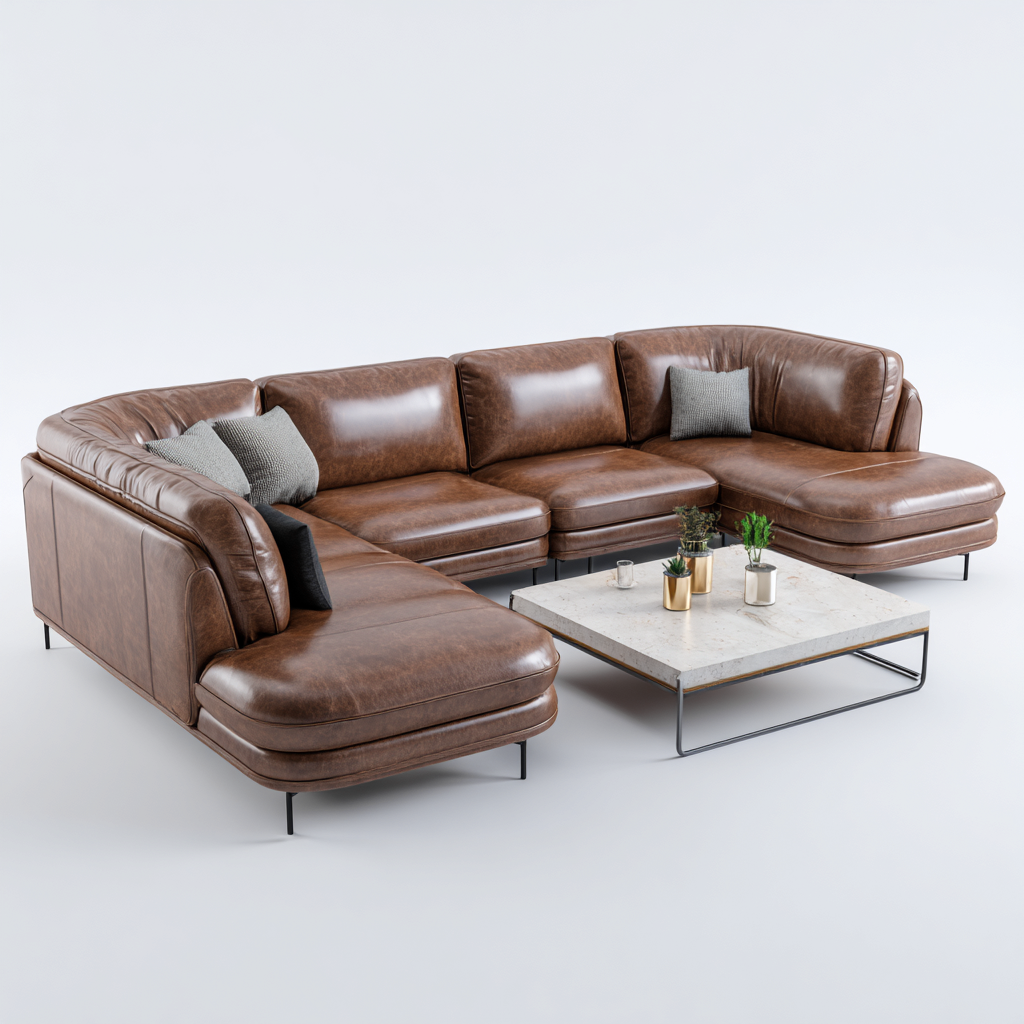 Divani modulari in pelle marrone 305x200x84 cm - marrone - design contemporaneo