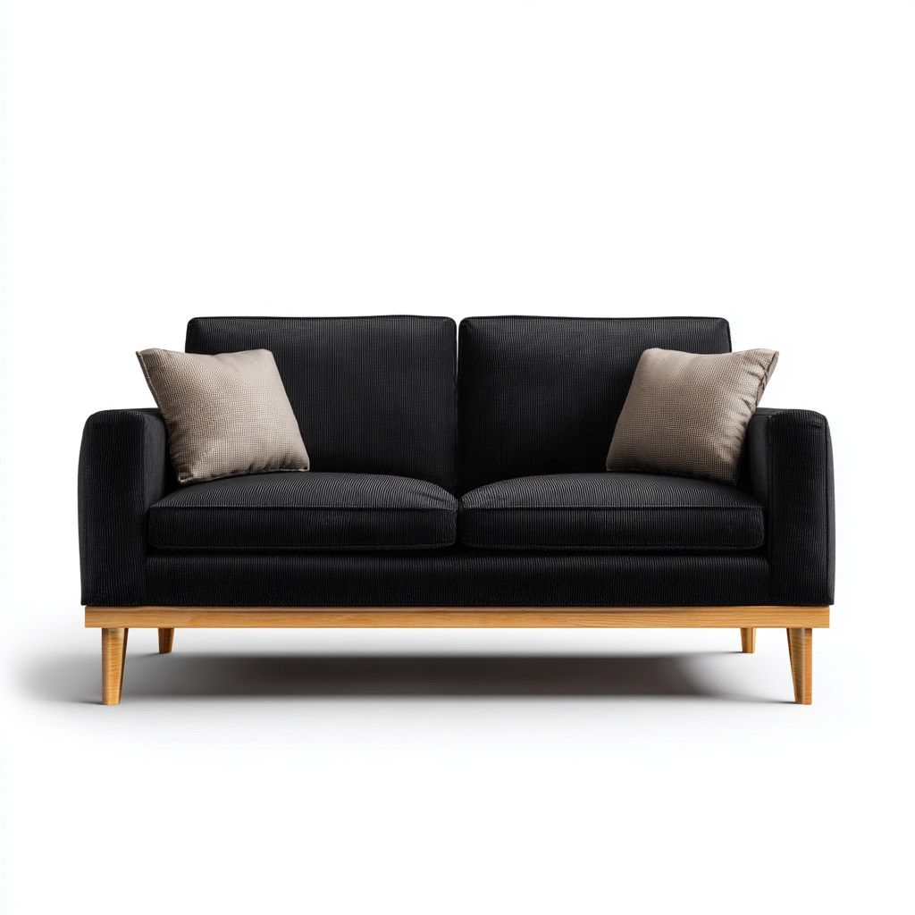Divano a due posti tessuto legno 180x90x85 cm - nero-legno naturale - per soggiorno - design moderno