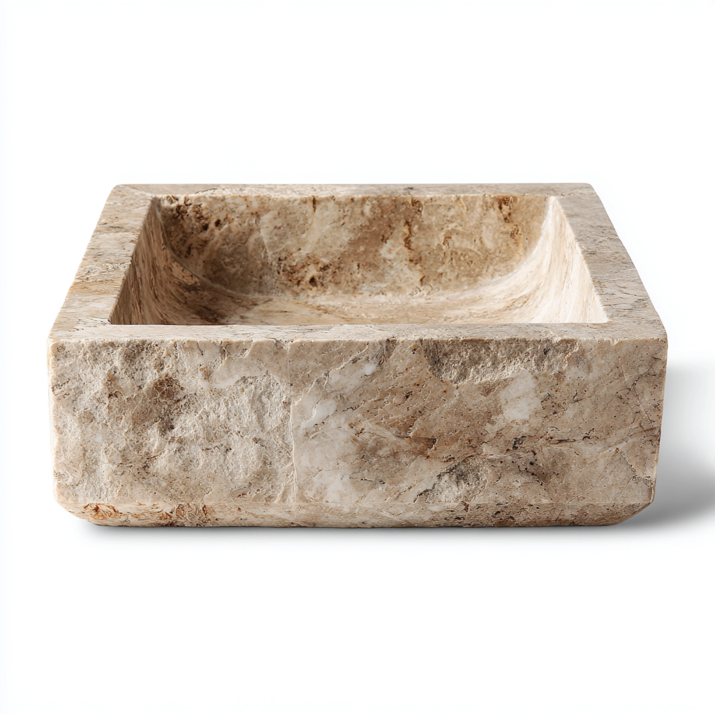 Lavabo in pietra naturale 45x45x15 cm - beige - design moderno