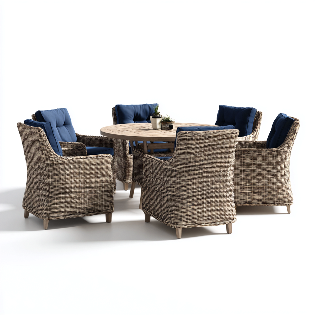 Set tavolo e sedie da giardino rattan legno cuscini 130x130x105 cm - blu-rattan naturale - adatto per giardino - design moderno