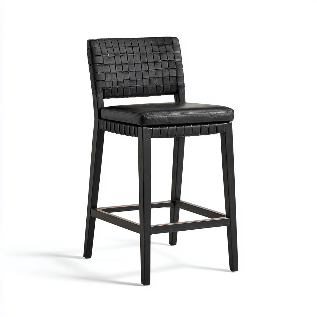Sgabello da bar intrecciato legno e similpelle 47x48x102 cm - nero - design contemporaneo