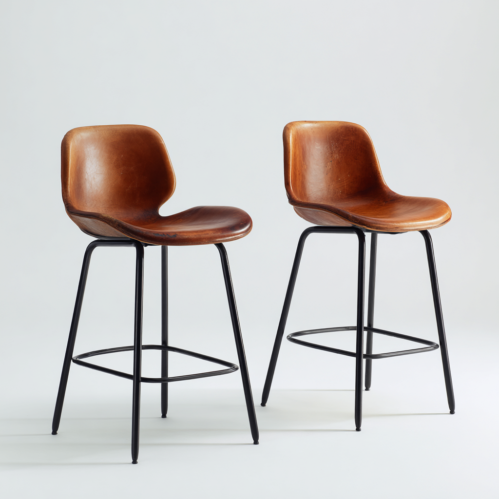 Sgabello da bar seduta in pelle sintetica e struttura in metallo 47x46x102 cm - marrone-nero - design moderno