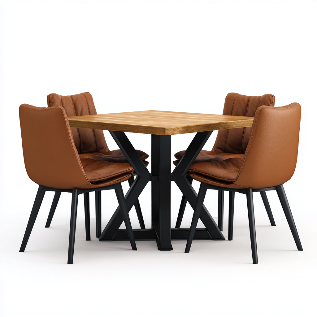 Tavolo e sedie legno metallo pelle 90x90x75 cm - marrone chiaro-marrone-nero - per sala da pranzo - design moderno