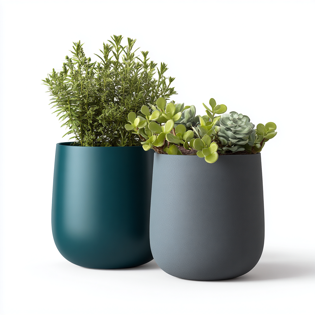 Vasi e supporti per piante plastica 20x20x28 cm - 22x22x30 cm - verde-blu - adatti per casa e giardino - design moderno